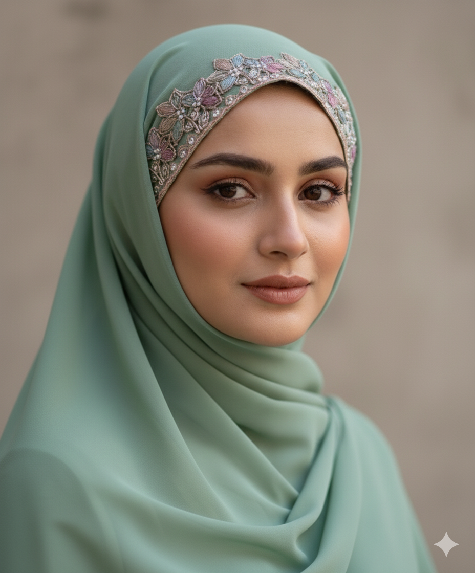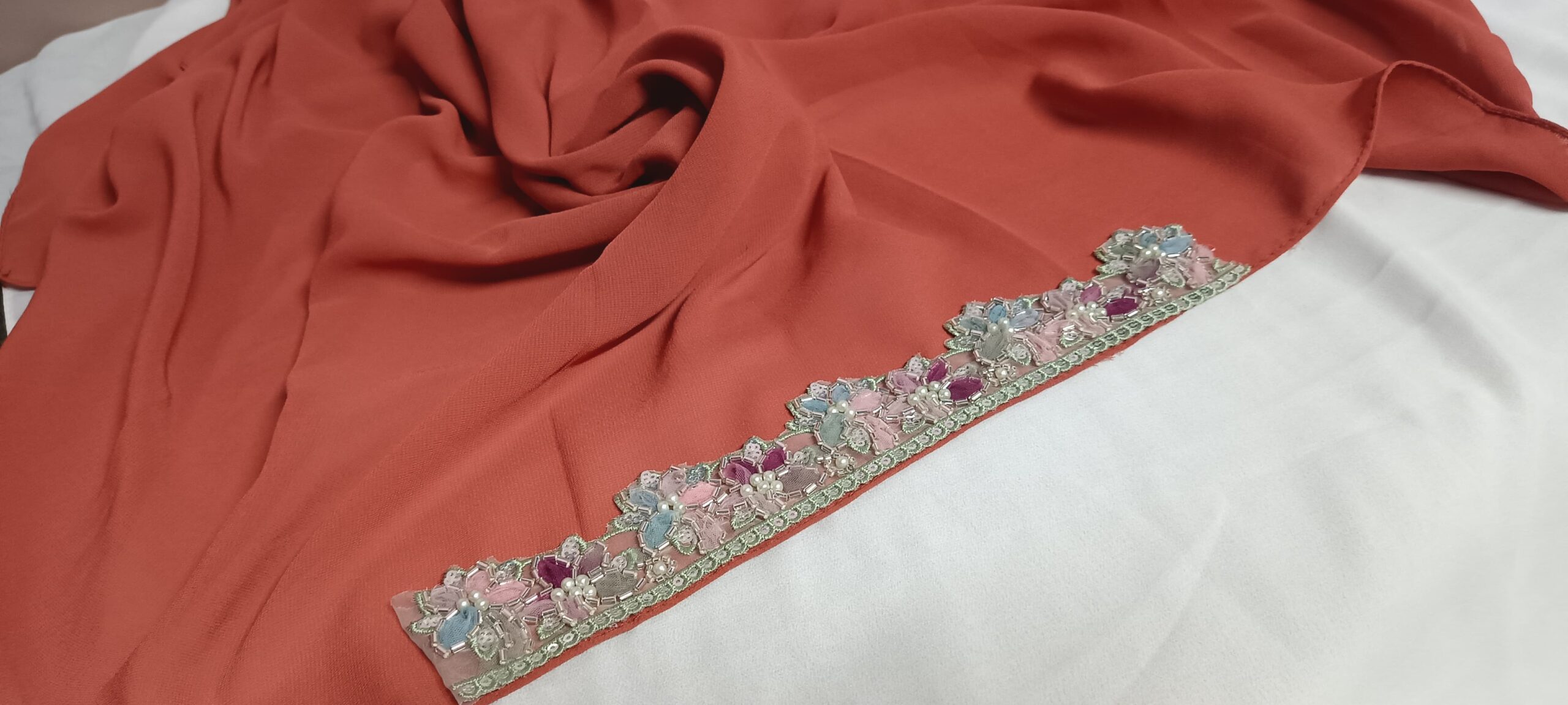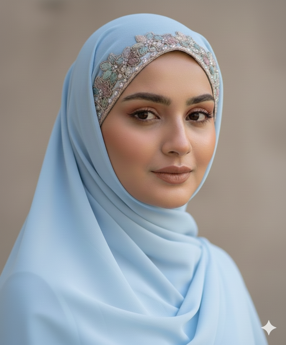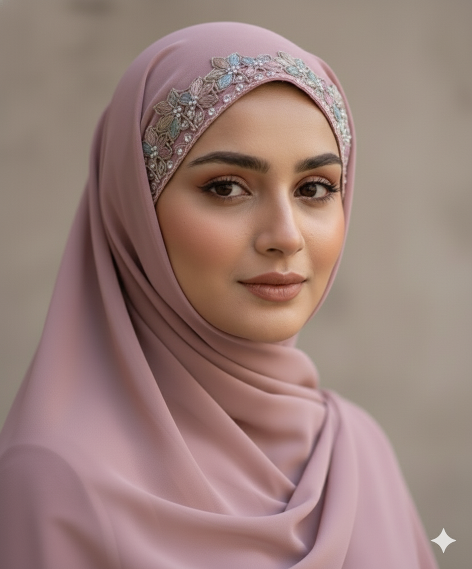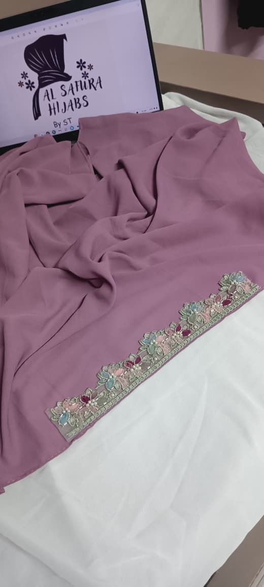 Handcrafted lace on forehead of hijab Premium lace Fabric-Premium Chiffon