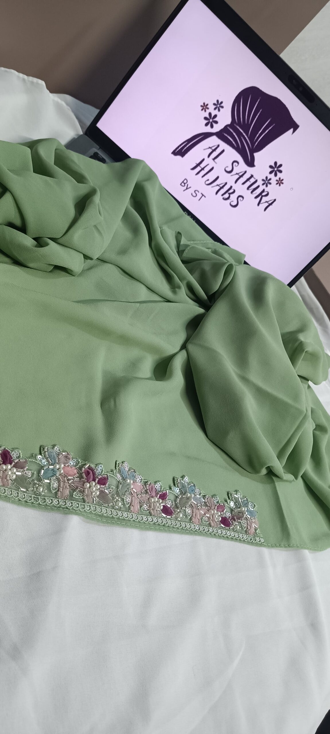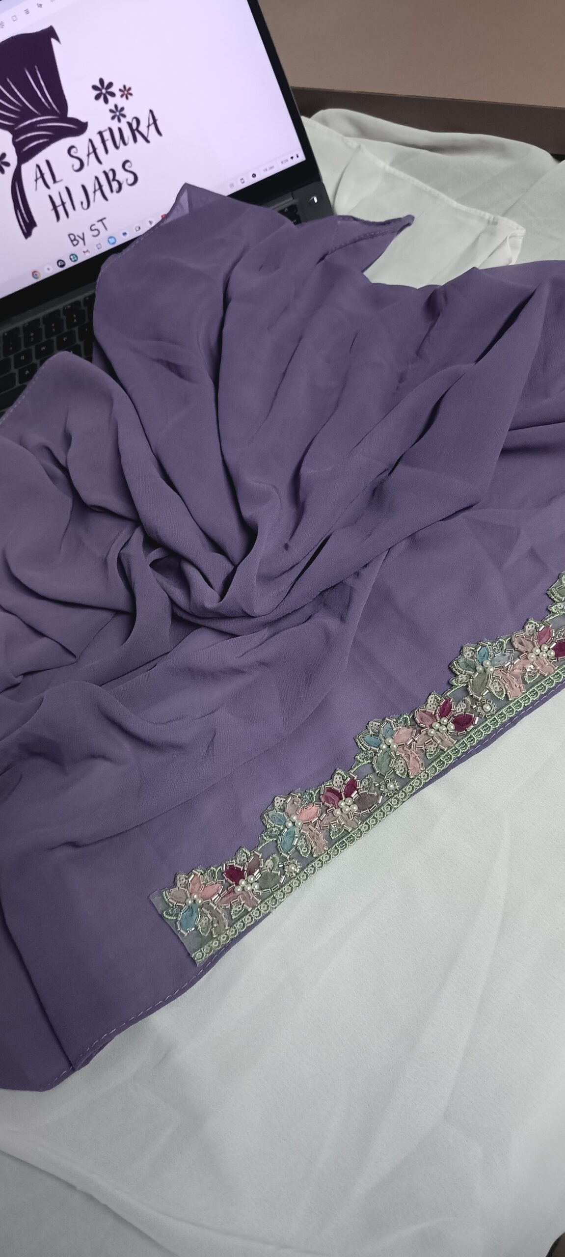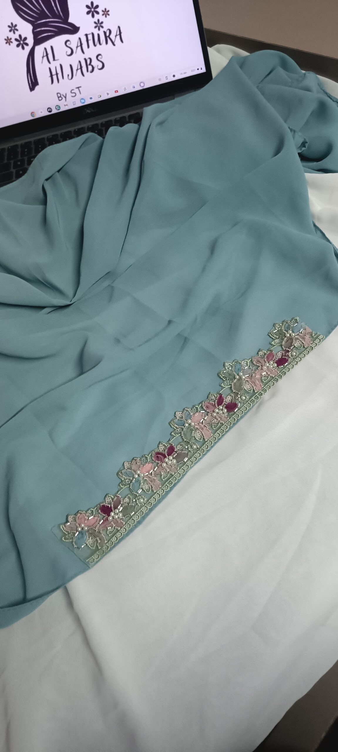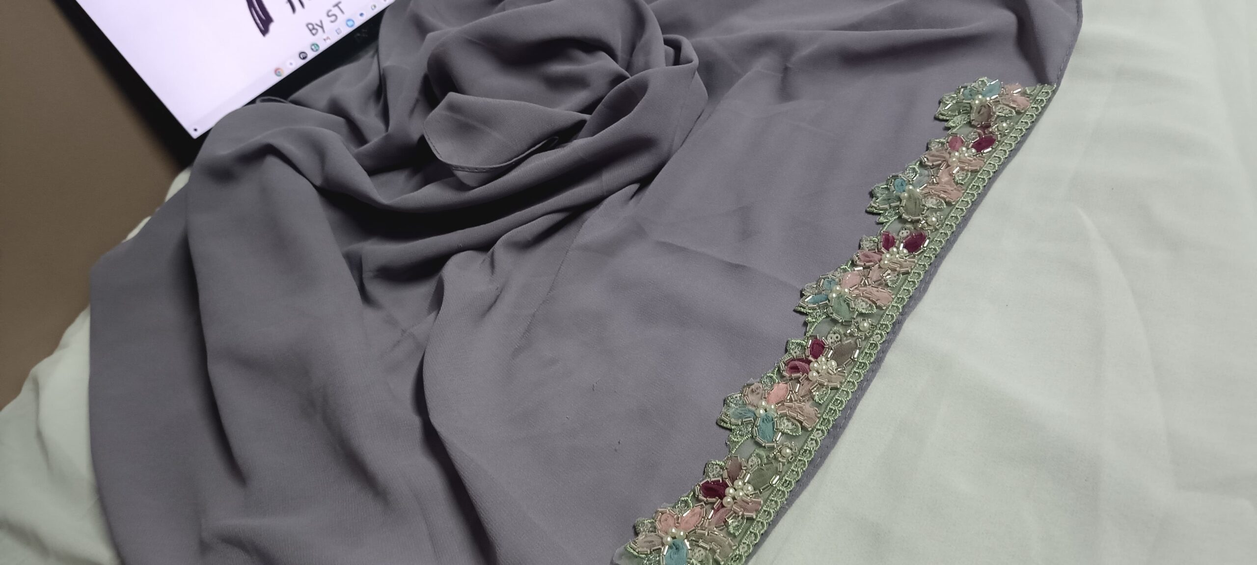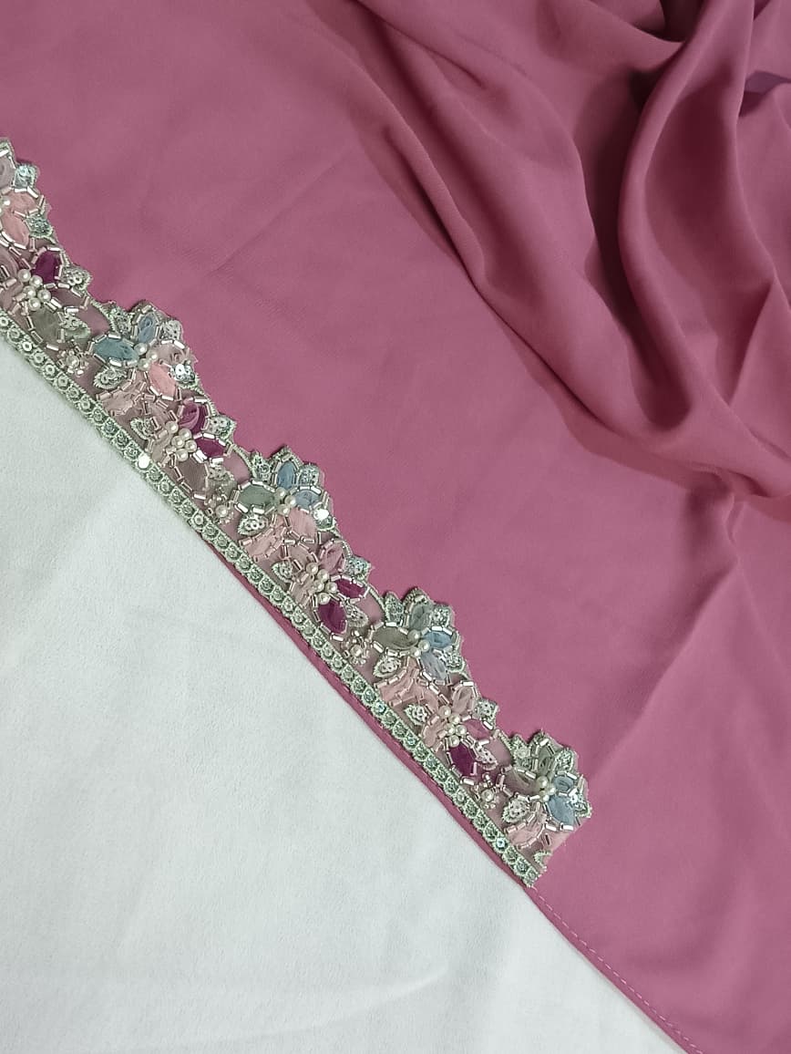 Handcrafted lace on forehead of hijab Premium lace Fabric-Premium Chiffon